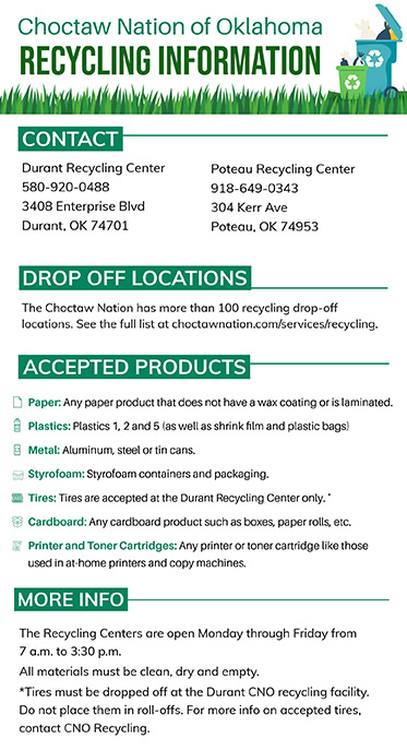 With dozens of recycling collection sites throughout the Choctaw Nation reservation, tribal members have ample opportunities to participate in environmental conservation efforts.