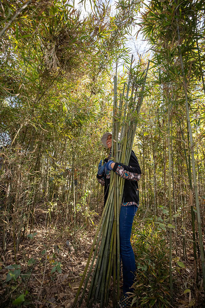 Once harvested, the cane is carefully bundled and immersed in water to preserve its flexibility and prevent it from drying out.